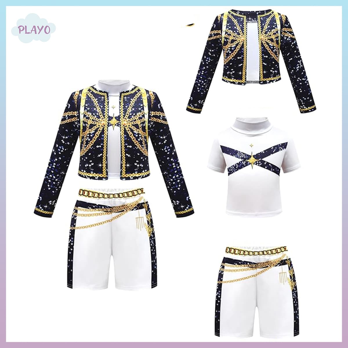 მირას ფორმა Kpop Demon Hunters არის გამორჩეული კოსტუმი გოგონებისთვის, რომელიც აერთიანებს თანამედროვე K-pop მოდას და გმირული ანიმაციის სტილს. შთამბეჭდავი შავი და თეთრი ფერების კომბინაცია, ოქროსფერი დეტალებითა და ბრჭყვიალა დეკორით, ქმნის სცენურ და ეფექტურ იერს, რომელიც ყურადღებას ვერ გაექცევა.