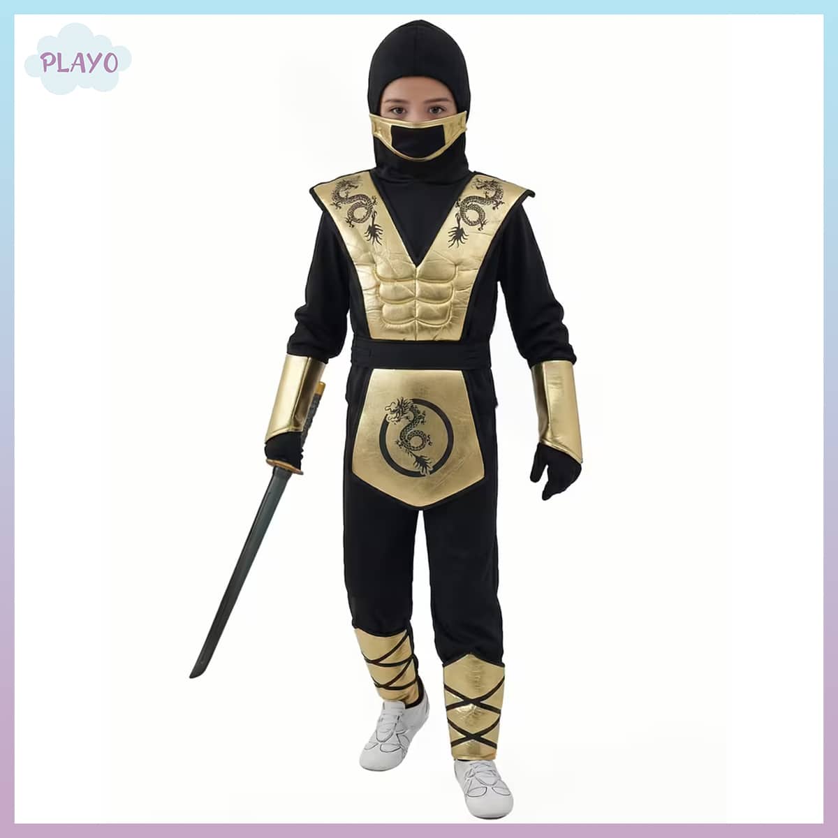 - შემადგენლობაშია: კოსტუმი ჰუდით და ნიღბით, შარვალი, ხმალი