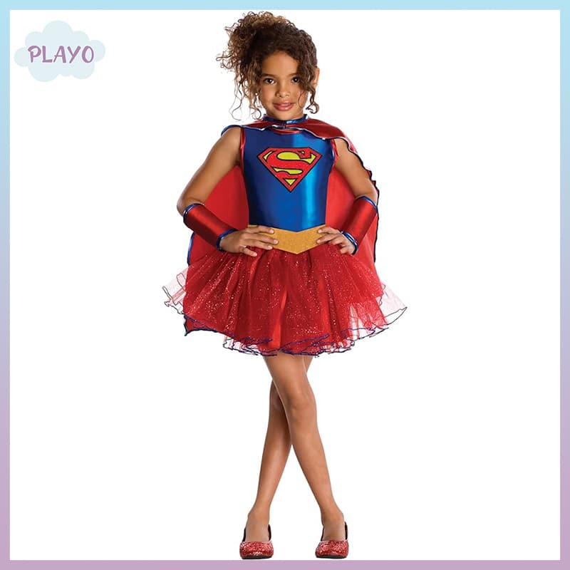 საბავშვო კოსტუმი Supergirl – სუპერგოგო – Rubies–ის ოფიციალური DC Comics სერიის სუპერგოგოს კოსტუმი ხარისხიანი და სტილური არჩევანია ყველა პატარა სუპერგმირისთვის. კაბა შექმნილია რბილი და უსაფრთხო მასალისგან, აქვს ელასტიური ზედა ნაწილი, ბზინვარე ქვედაკაბა და კლასიკური ლოგო, რაც ბავშვებს საშუალებას აძლევს თავი ნამდვილ გმირად იგრძნონ. კომპლექტში შედის მანტია, რათა ლუქი სრულად იყოს.