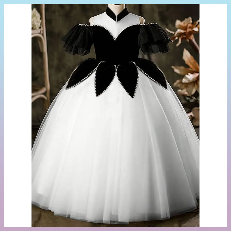 სადღესასწაულო კაბა გოგონებისთვის – არის შესანიშნავი არჩევანი პატარა გოგონებისთვის, რომლებსაც უყვართ ელეგანტურობა და განსაკუთრებული იერი. ამ კაბას გამოარჩევს შავი ზედა ნაწილი და ფუმფულა თეთრი ქვედაბოლო, რომელიც ქმნის სრულყოფილ კონტრასტს და ფერთა ჰარმონიას. თითოეული დეტალი შესრულებულია ზუსტად და ფრთხილად, რაც ამ კაბას ნამდვილ სადღესასწაულო ელფერს სძენს.