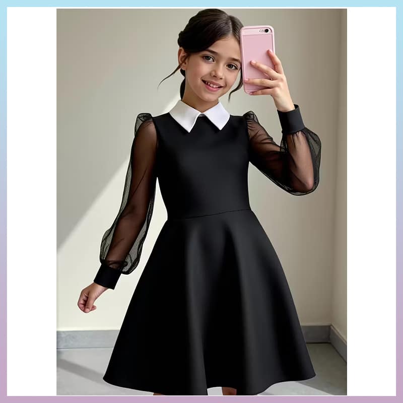 შავი სადღესასწაულო კაბა გოგონებისთვის